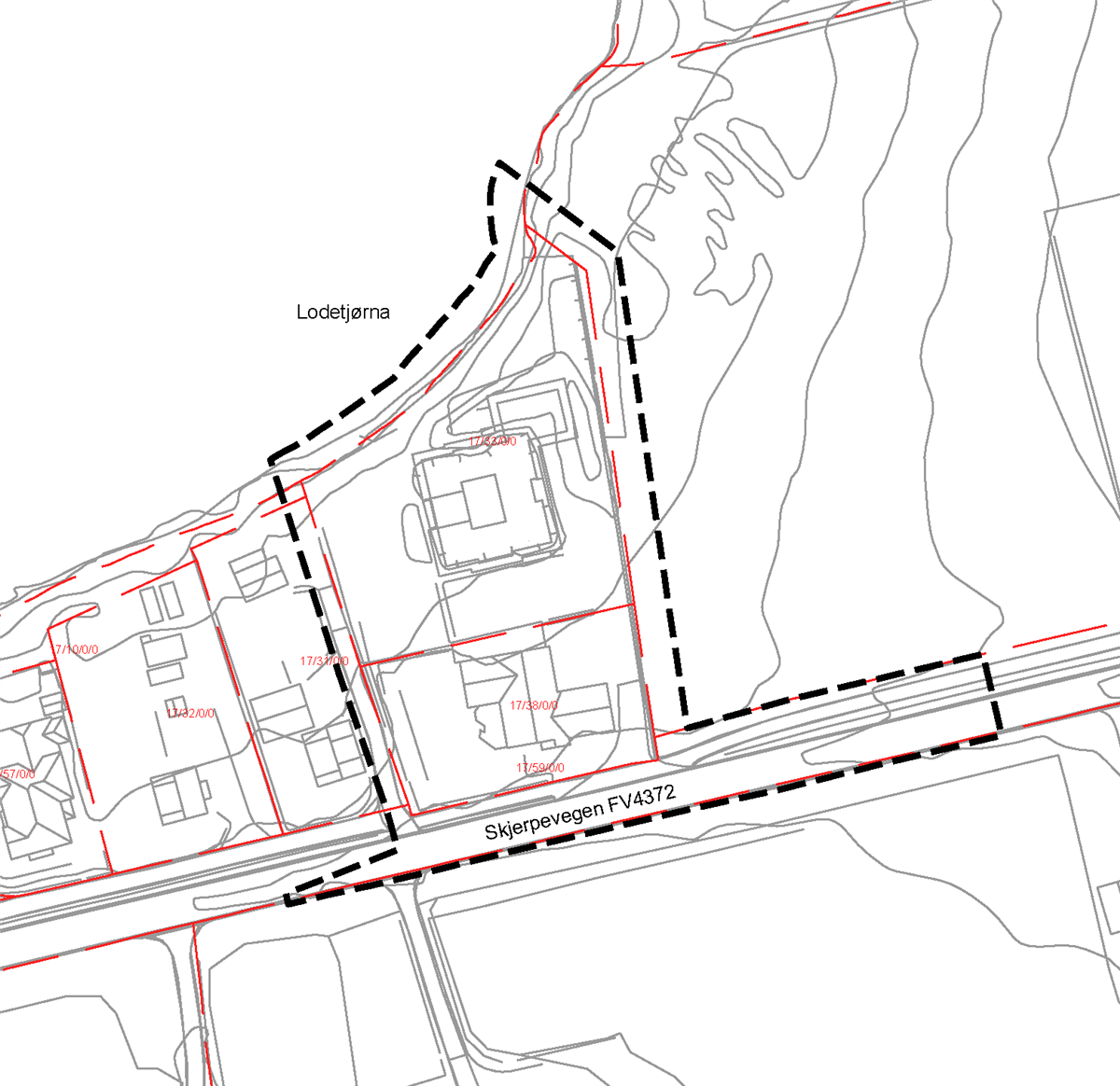 - Planen skal legge til rette for fortetting og samtidig ivareta hensyn til trafikksikkerhet mot fylkesveg 4372 Skjerpevegen, og flomforhold og naturmangfold mot Lodetjørna.